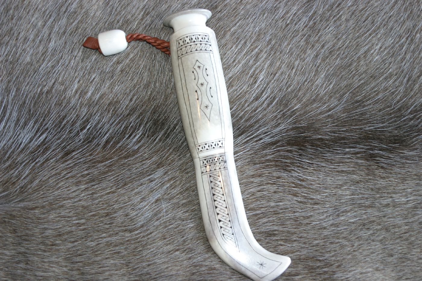 Manche tout en bois de renne, fourreaux tout en bois de renne avec gravure laponne.
